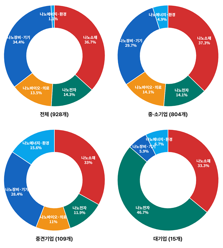 2024년 나노융합산업 수는 928개이며 그 중 중·소기업이 86.6%를 차지함
