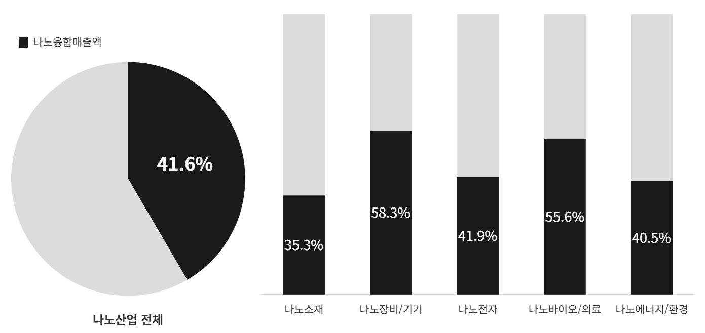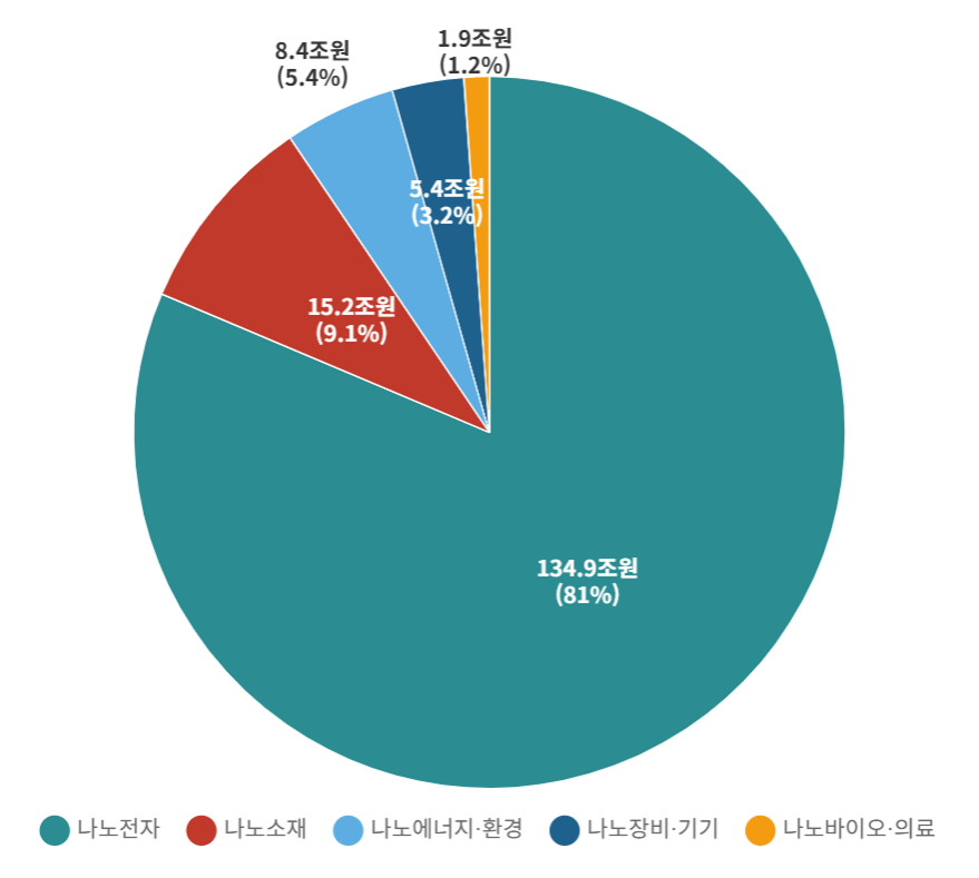 나노융합산업 업체 중 15개 대기업의 매출규모가 전체 매출에서 89.6%로 대부분을 점하며, 중견기업 및 중·소기업 913개 업체의 매출은 전체의 10.4%를 차지